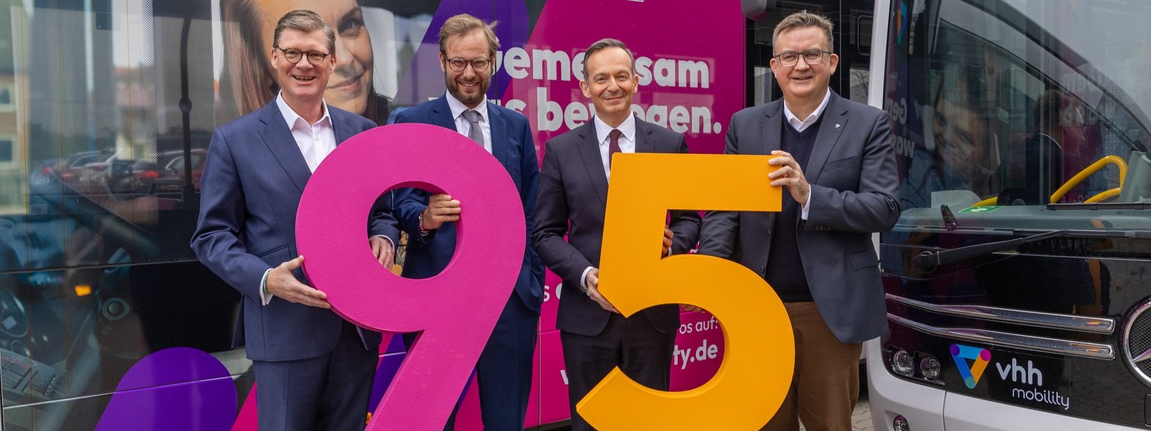 Daimler-Benz and Vhh.mobility officials at the delivery of the 95th electric bus.
