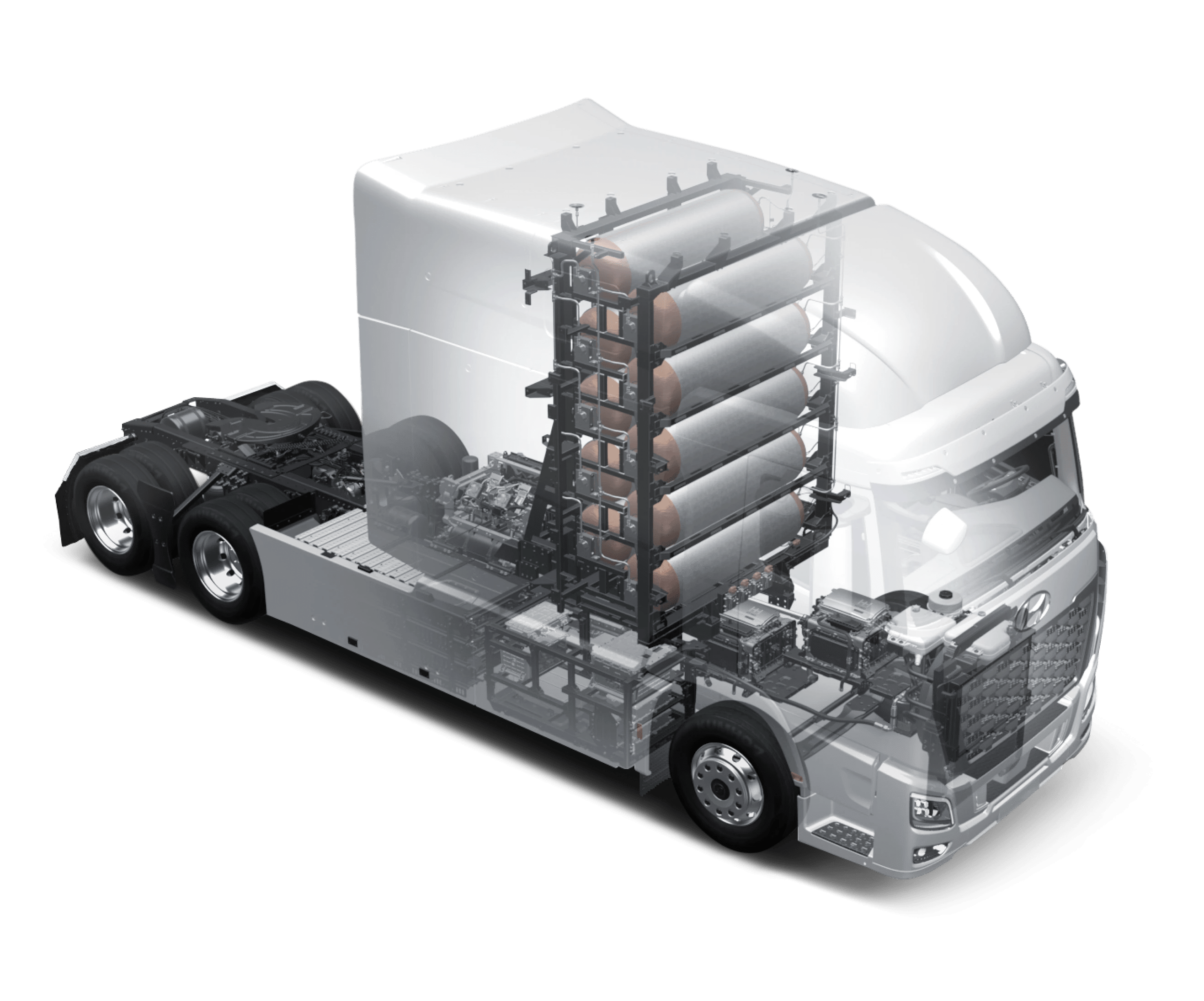 Operating as part of a joint venture with logistics/3PL company Glovis America, Hyundai's hydrogen fleet will consist of 21 XCIENT trucks, each packing electric motors that combine to deliver approximately 470 hp and 1650 lb-ft of torque per 0 rpm. Unlike the direct drive/single speed setup in Tesla cars and other inexpensive EVs, the Hyundai XCIENT puts all that power through an Allison 400 Series six-speed automatic transmission, allowing the electric motor to stay close to 0 rpm/maximum efficiency. range of operation, even at highway speeds.